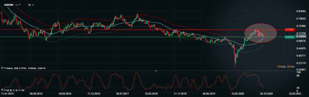 A heti AUDUSD igen érdekes helyzetképet mutat.