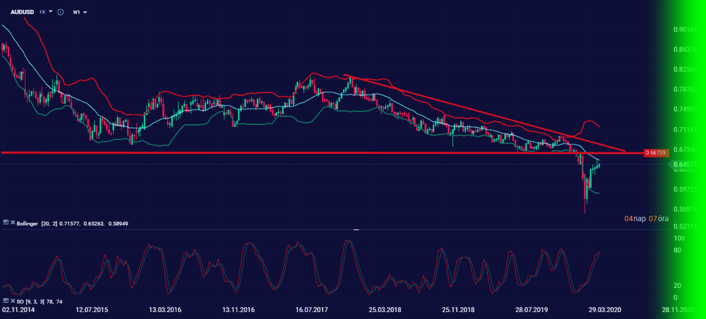 Heti szinten remekül látható, hogy igen intenzív az ausztrál dollár vétele az USA dollárral szemben. …és ez a vízszintes ellenállásig el is mehet, technikai oldalról szemlélve.