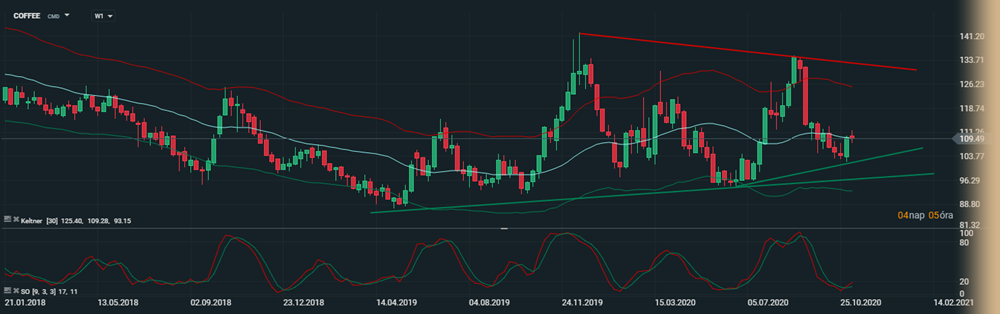 Egyenlőre billeg heti szinten a Kávé árfolyamának alkulása. Itt nagyon fontos az, hogy mekkora korlátozások, illetve nyitások valósulnak meg világszerte. Ami egyenlőre némileg kérdéses, vagy nem…. mivel igen erős bemondásra, bejelentésre történik.
