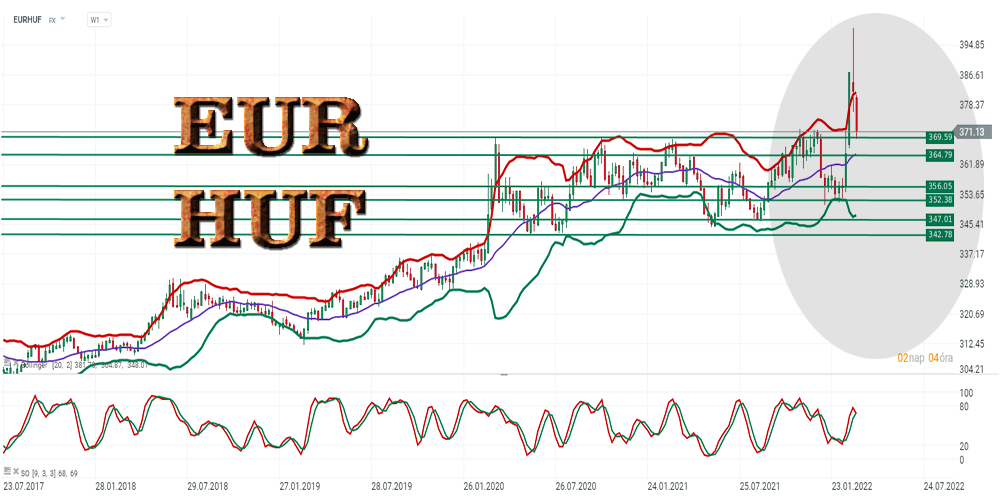 Így a mostani Magyar forint erősödése is, igen instabilnak tűnik, mint a háborús helyzet. Tehát csak óvatosan és okosan, a heti grafikon jól szemlélteti a pénzünk alakulásának helyzetét, valamint azt a helyzetképet, hogy milyen fontosabb szintek alakulhatnak ki a további erősödés esetén.