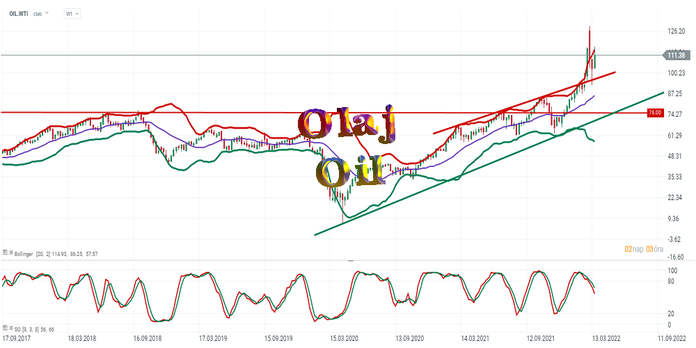 Amit a háború igen erőteljesen fokoz. Az, hogy mi lehet a teteje az olaj árfolyamának alakulásának a jó ég tudja. De, hogy igen nagy baj van a világban az tény! Mi csupán, annyit tudunk javasolni /írni/, hogy légy résen, mert pillanatok alatt változnak a piaci helyzetek.