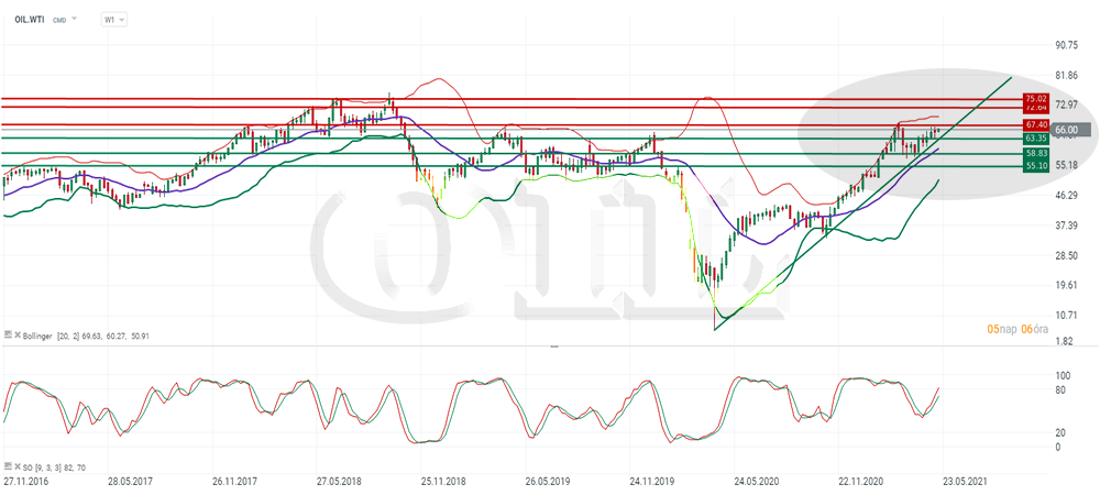 Kitörési lehetőség előtt az Olaj, ami 70 $ fölé is repítheti az olaj árfolyamának alkulását.