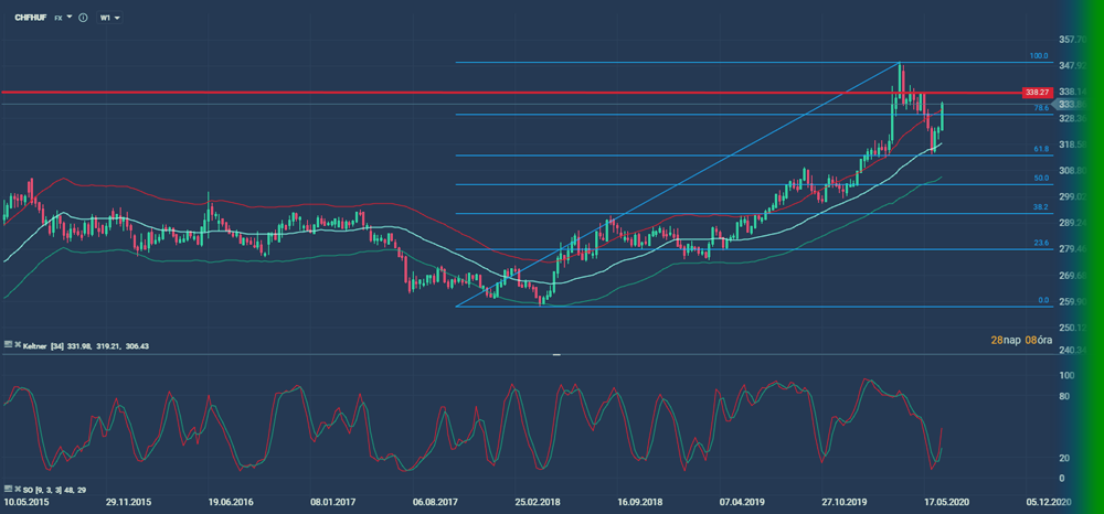 Na de vissza a kurzushoz. További forint gyengülés várható a svájci frankhoz képest is. A heti CHFHUF grafikon ezt remekül szemlélteti. …és ennyi, sajna!
